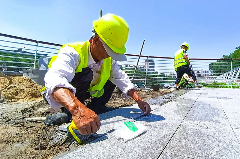 6月3日,在荊河生態(tài)景觀提升工程(龍泉大橋至解放大橋段)施工現(xiàn)場(chǎng),工人們有的在忙著焊接護(hù)欄,有的在鋪設(shè)地磚,現(xiàn)場(chǎng)一片繁忙景象。荊河生態(tài)景觀提升工程(龍泉大橋至解放大橋段)由滕投集團(tuán)負(fù)責(zé)建設(shè),博誠路橋公司負(fù)責(zé)施工,提升改造的原則對(duì)原景觀采取“低干預(yù)、微改造、精提升”的方式進(jìn)行,主要施工內(nèi)容包括濱河